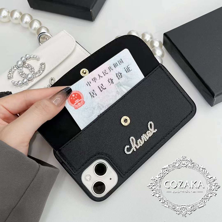 シャネルアイフォーン15 15plus携帯ケース 革製 真珠チェーン取り外し可能 ブランドchanelメタルロiphone14pro max/14キラキラカバー 背面 収納 女性愛用 高品質 シャネルiphone13pro/13/12スマホケース人気新品 耐衝撃ファッション日韓風